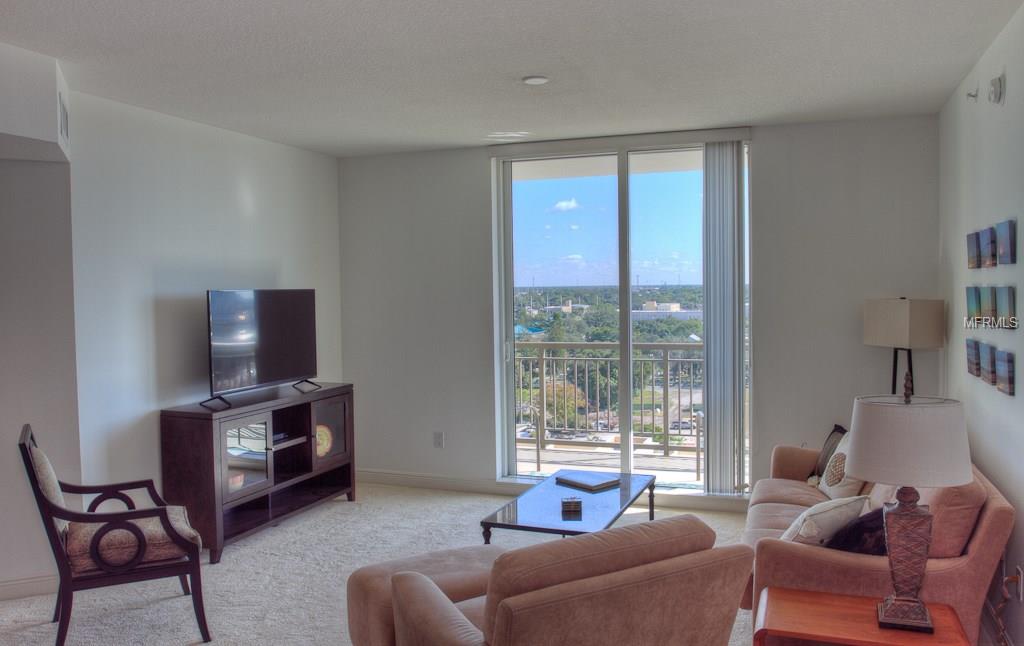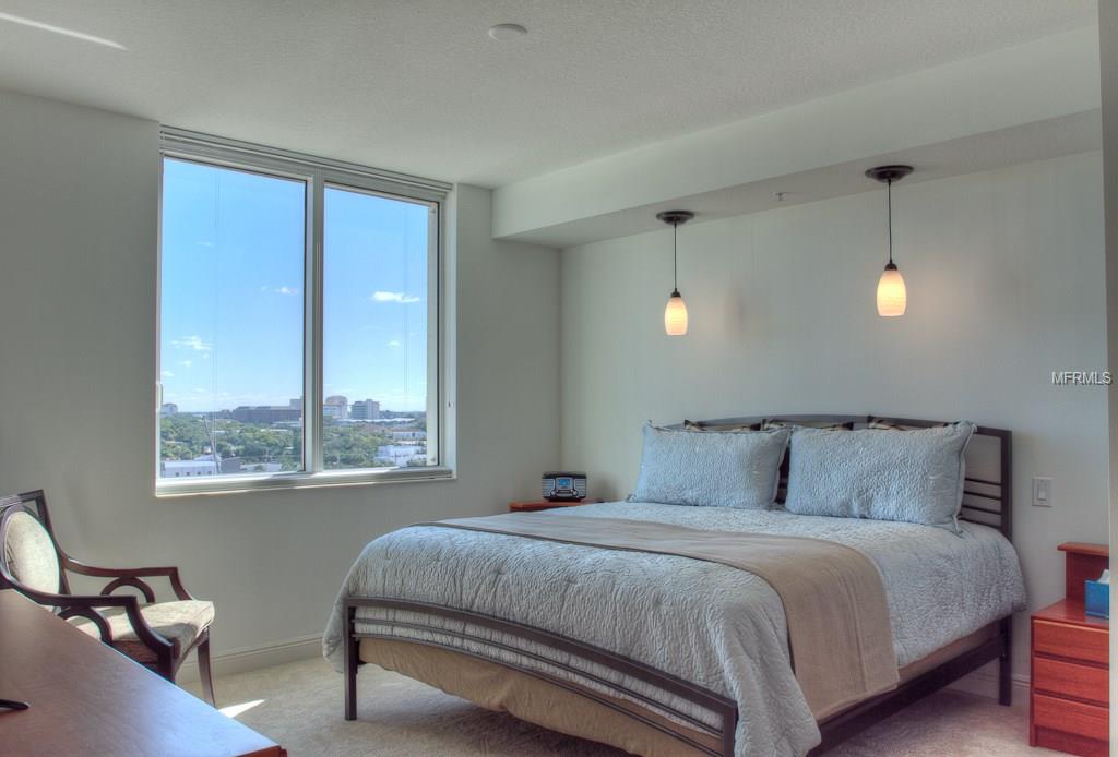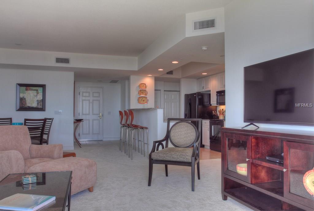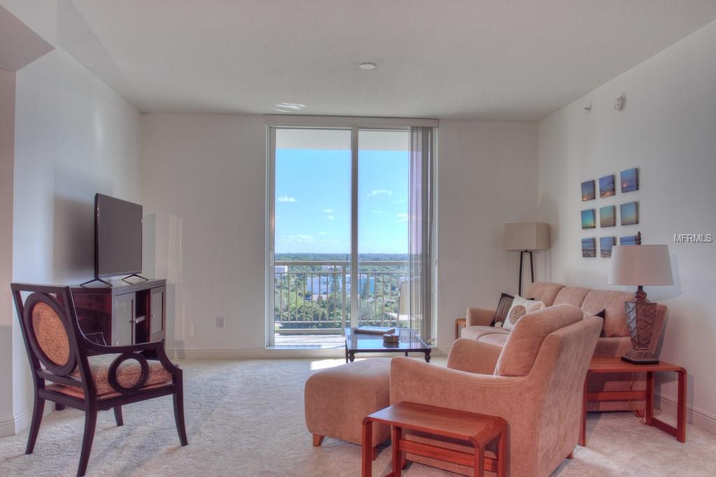DOWNTOWN ALINARI TURNKEY FURNISHED. RESORT style living at the ALANARI. Newly Furnished and freshly painted and new carpet. Sunny open floor plan with large master suite with a king size bed and 40″ Flat screen TV, large walk in closet and master bathroom with garden tub and walk in shower. Living room/ dining room features a 50″ flat screen TV and a private terrace that overlooks the beautiful Community Pool and expansive cityscape vistas. Perfect kitchen with breakfast hi-bar, granite counter tops. Bedroom two features a queen size bed. Spacious laundry room. One car garage in secure parking garage and plenty of guest parking. Located on the 10th floor in the south tower within close proximity to the elevator. The Alinari provides every amenity you could need: a 24 hour concierge and security, meeting rooms, library, world class fitness center, heated pool with spa and waterfalls, wine room, media room, in-house movie theater, billiards, zen garden and outdoor grilling area. Walk to downtown and enjoy the restaurants, theater, opera, shopping and more. Walk along the water way and enjoy Sarasota’s sunsets. Cross the bridge to St Armands Circle for shopping, restaurants, and the beach. Three month minimum stay. Monthly rate for May through November is $2500.